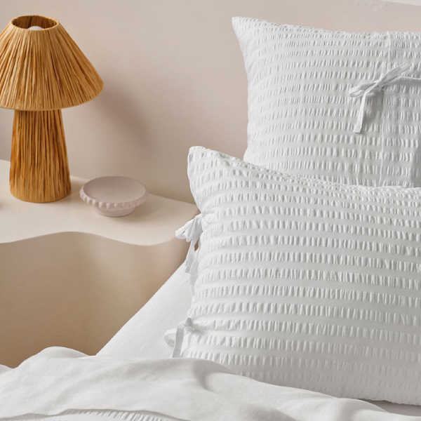 A chunky cotton seersucker with a stylishly woven check, Ferrara will instantly elevate your bedroom.